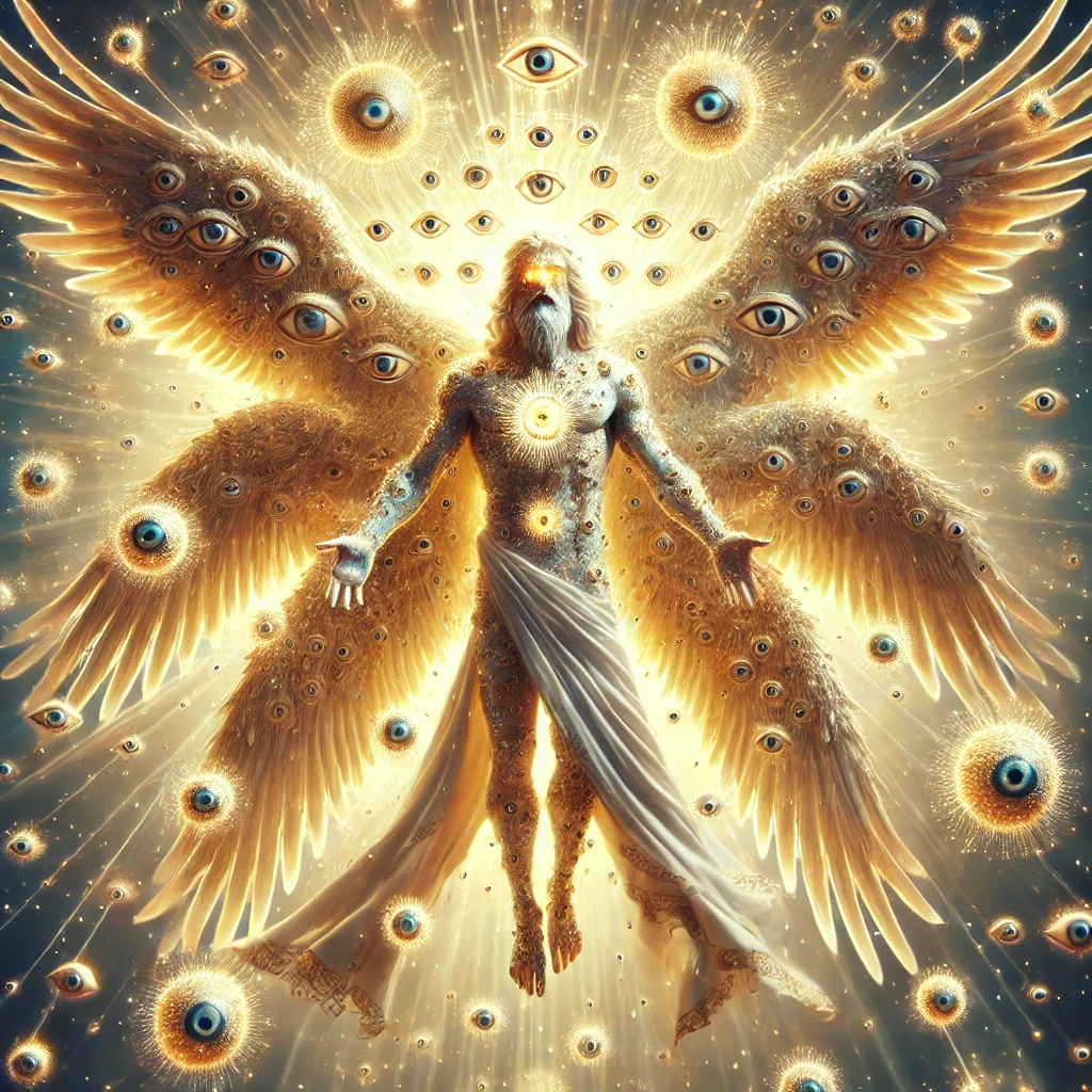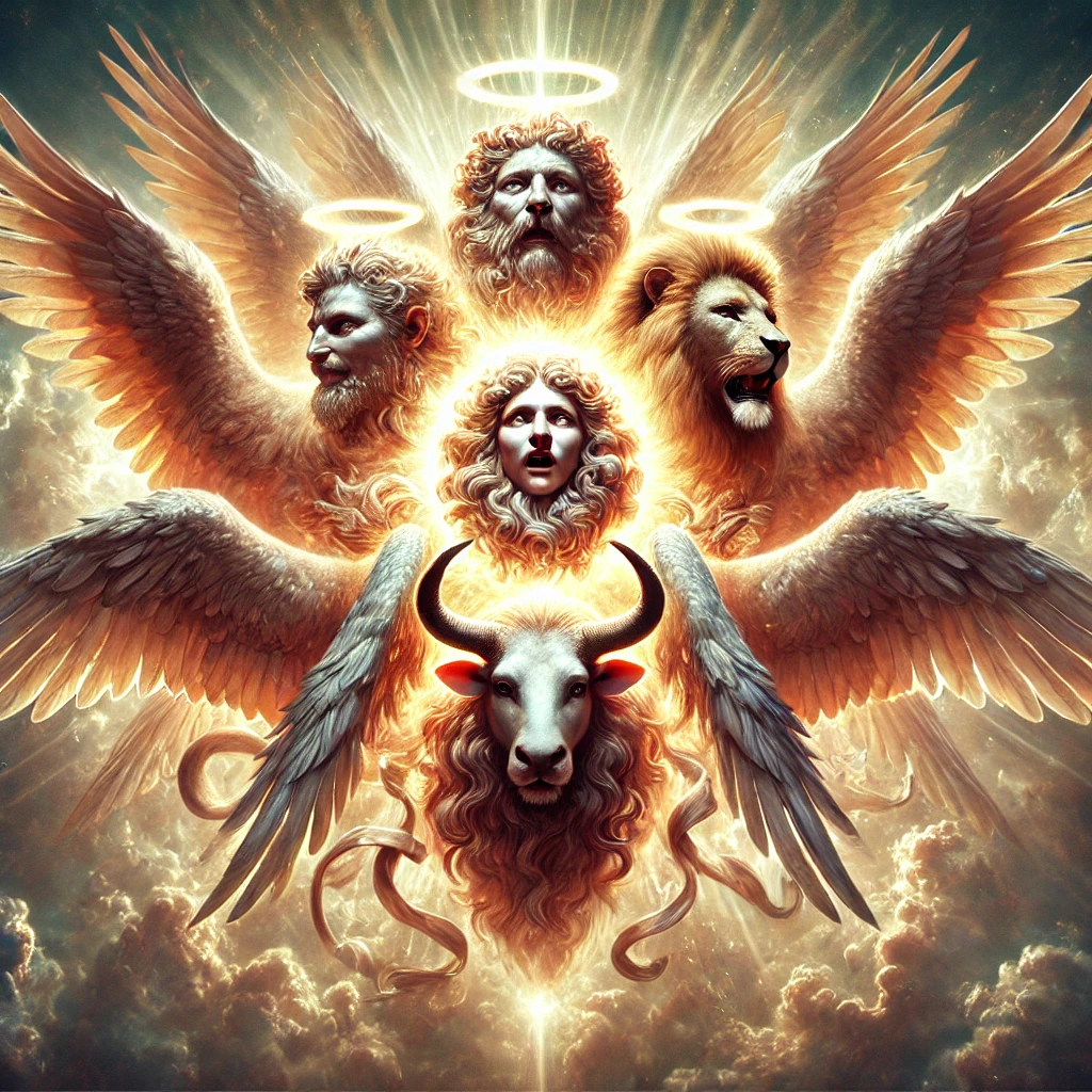 Cherubim are powerful angels described in Ezekiel 10 and Genesis 3:24. They have four faces (human, lion, ox, and eagle), multiple wings, and are covered in eyes, symbolizing God’s omniscience and power.