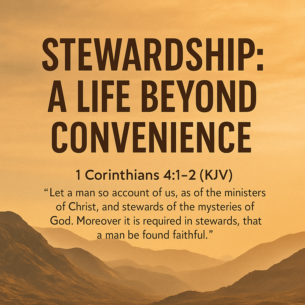 Stewardship is not a convenience—it is a calling. It is not a hobby—it is a heavenly trust. And it will require maturity, revelation, and the Spirit of God to serve faithfully until the end.