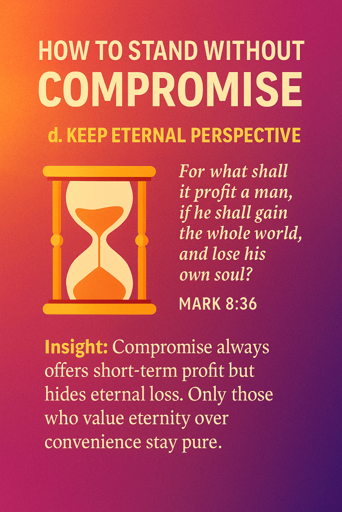 👉 Insight: Compromise fades where eternal perspective rules. Those who fear God above men cannot be bought, bribed, or broken.