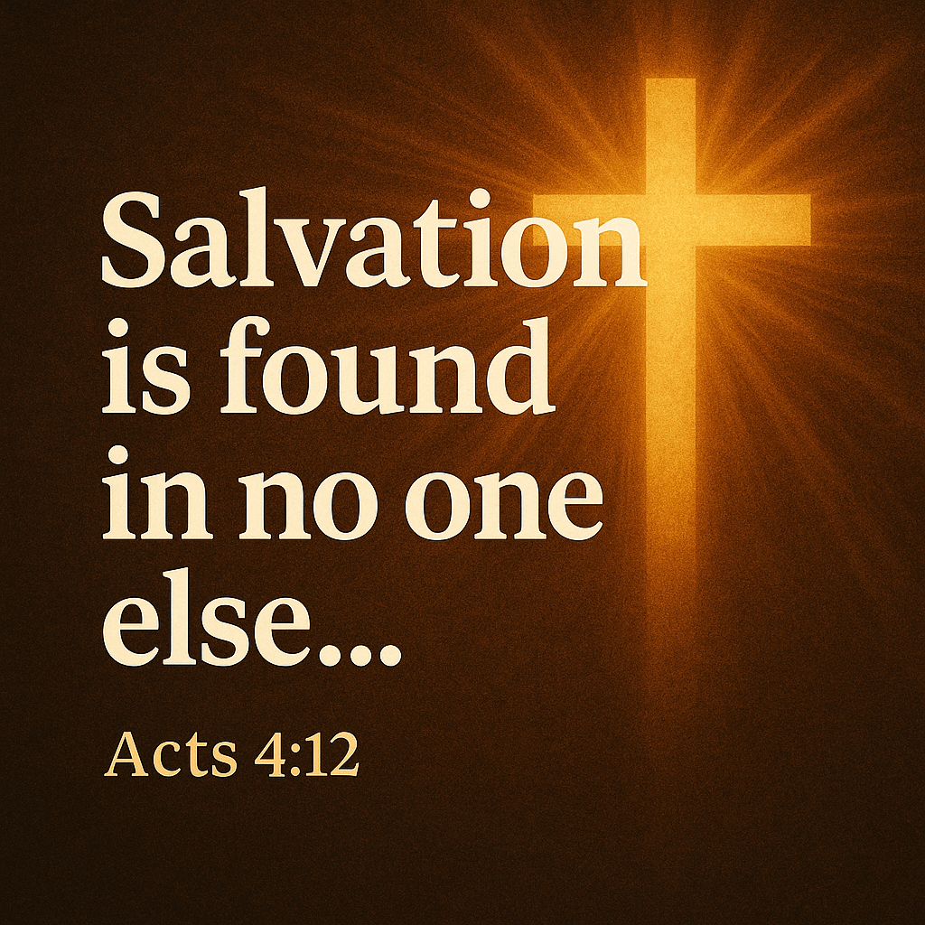 Acts 4:12 — “Salvation is found in no one else, for there is no other name under heaven given among men by which we must be saved.”