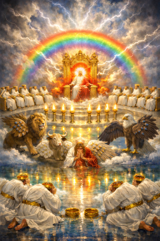 The throne is the command center. The Lamb stands before it. The seals are opened from it. The horsemen ride under it. Christ is not reacting to world events—world events are reacting to Christ’s unveiling.
