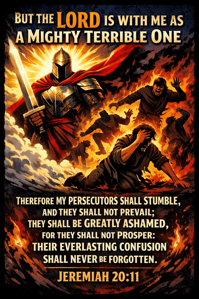 But the Lord is with me as a mighty and terrible One; therefore my persecutors will stumble, and they will not overcome [me].”